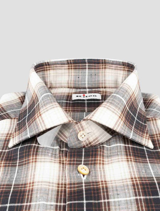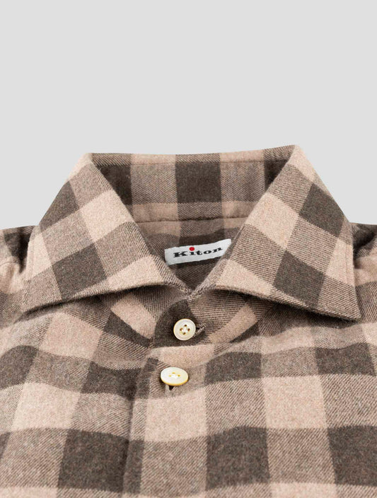 Kiton Premium Brown Plaid Cotton Shirt - Handmade Italian Regular Fit