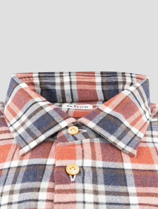 Kiton Handmade Cotton Plaid Shirt Brown Blue Regular Fit Italian