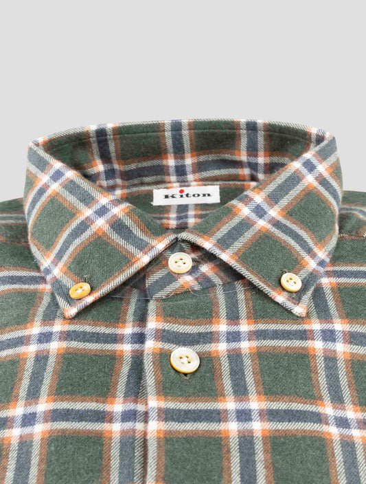 Kiton Handmade Cotton Plaid Shirt Multicolor Italian Regular Fit