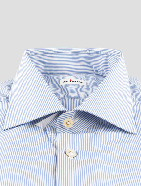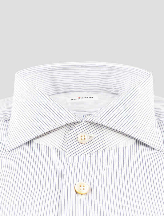 Kiton Handmade Premium Cotton Striped Dress Shirt Blue White
