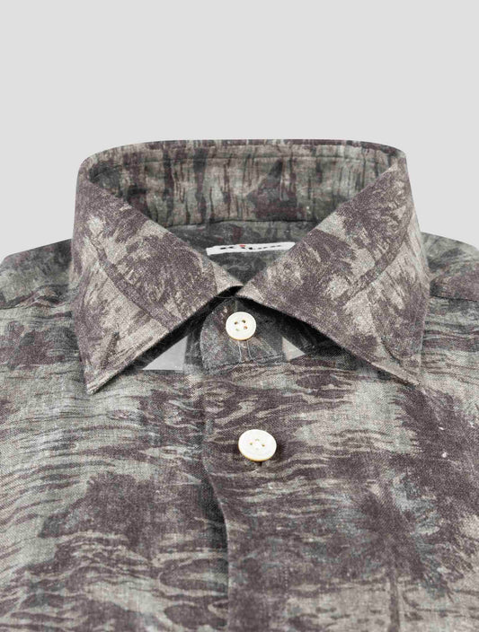 Kiton Premium Gray Linen Shirt - Handmade Italian Floral Menswear