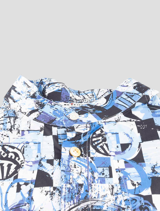 Kiton Cotton Short Sleeve Shirt Blue White Geometric Italian Made