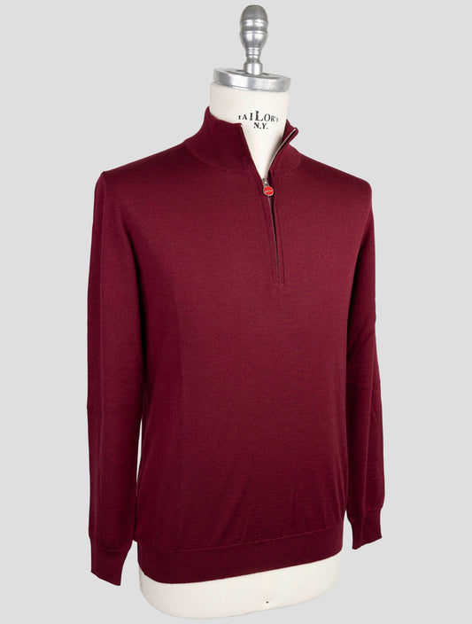 Kiton Burgundy Cashmere Silk Half Zip Sweater - Handmade Italian