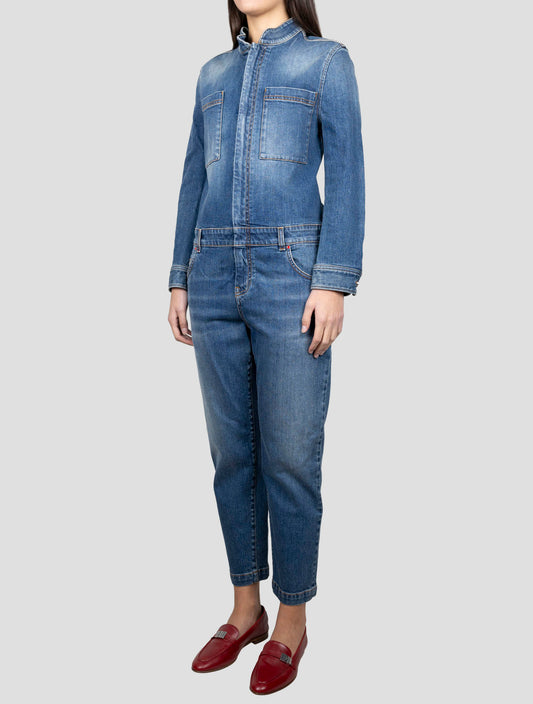 Kiton Blue Cotton Jumpsuit - Handmade Italian Women's One-Piece