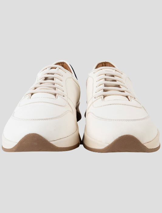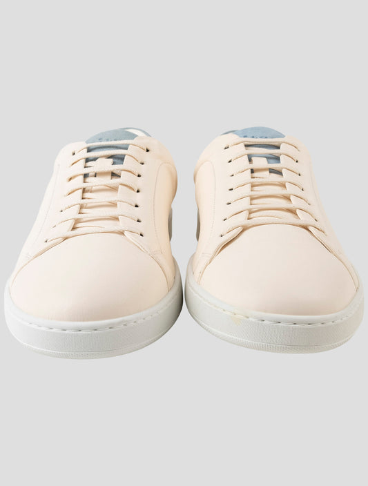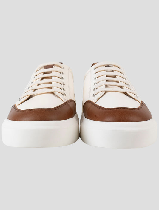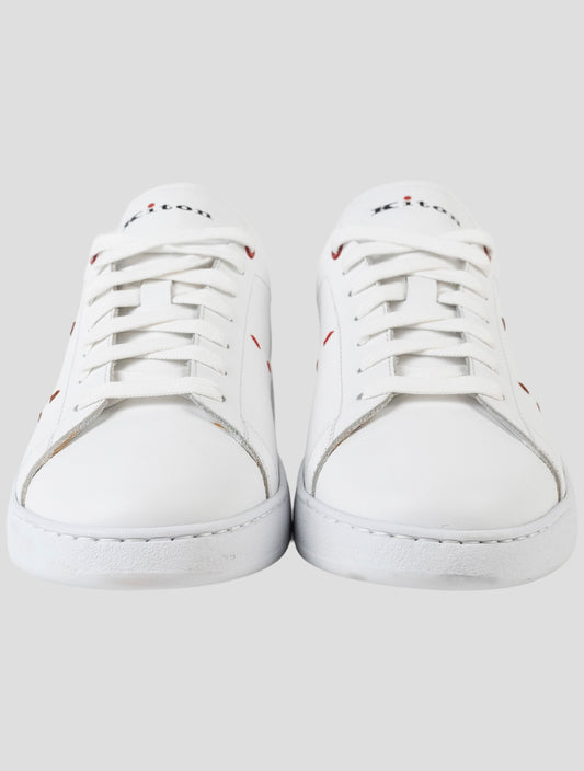 Kiton Premium Italian Handcrafted White Brown Leather Sneakers Men