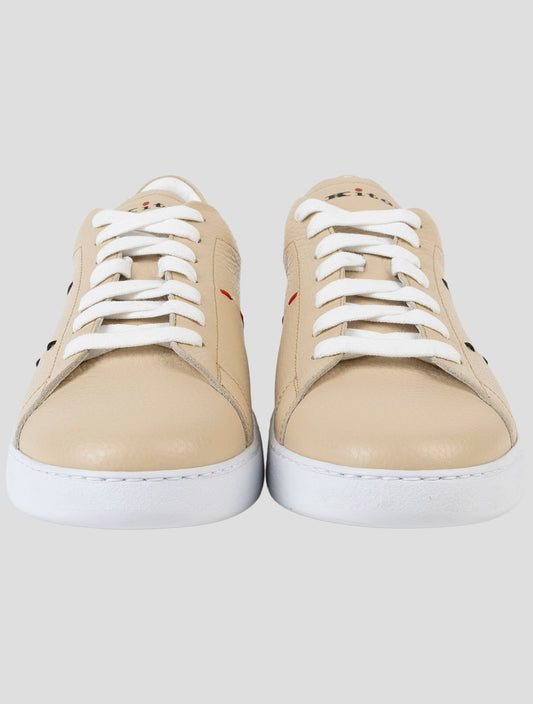Kiton Beige Leather Sneakers Italian Handcrafted Men's Premium