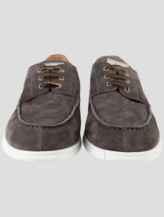Kiton Handmade Gray Leather Suede Sneakers Italian Luxury Men