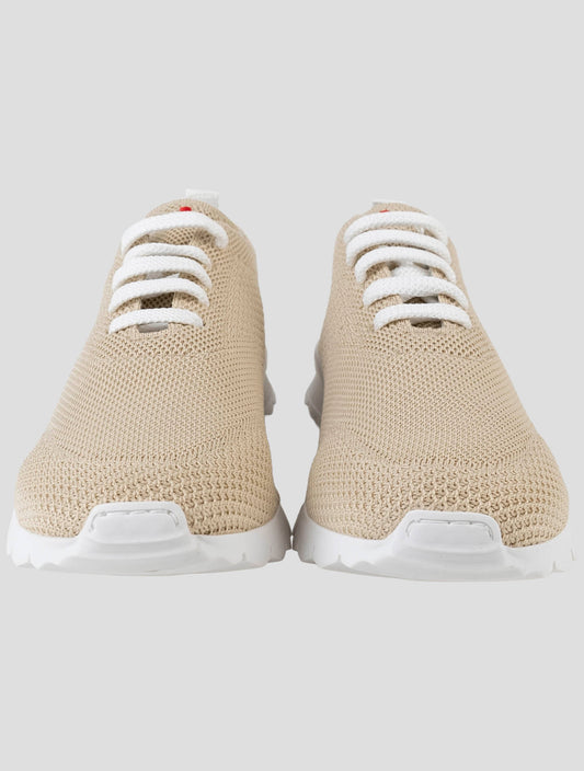 Kiton Handmade Beige Cotton Elastane Sneakers Italian Luxury