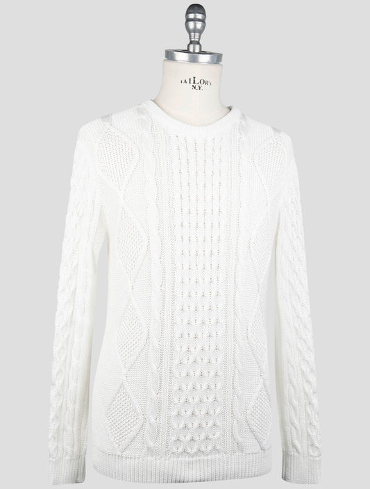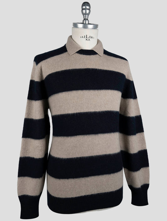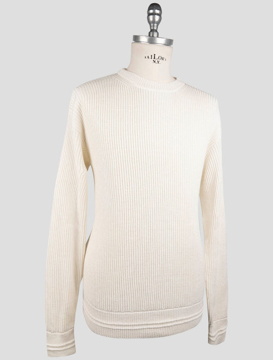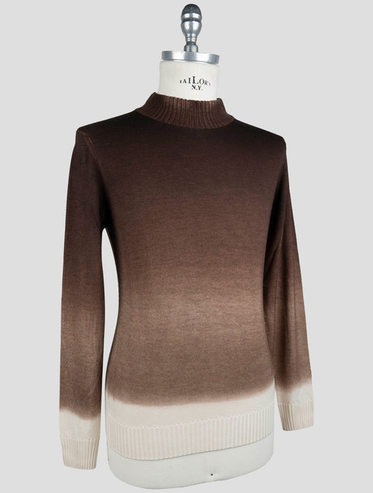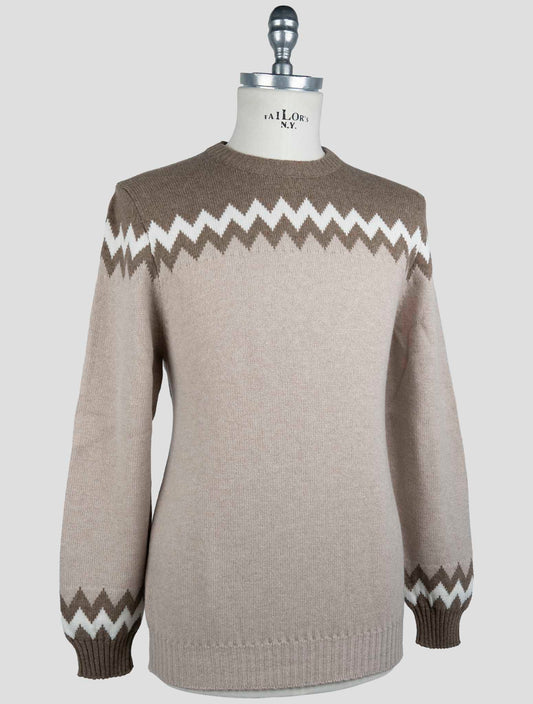 Kiton White Brown Cashmere Silk Sweater Crewneck