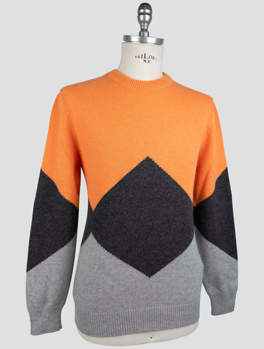 Kiton Orange Gray Cashmere Sweater Crewneck