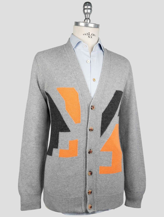 Kiton Gray Orange Cashmere Sweater Cardigan