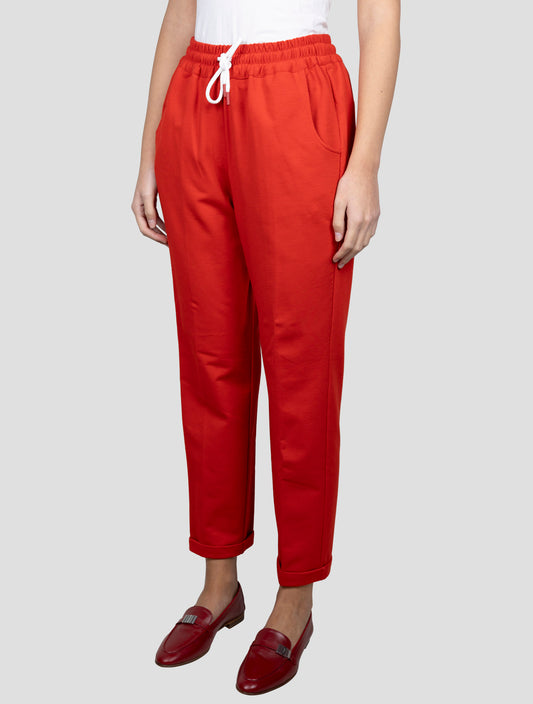 Kiton Red Cotton Elastane Pants - Women's Italian Tailored Fit