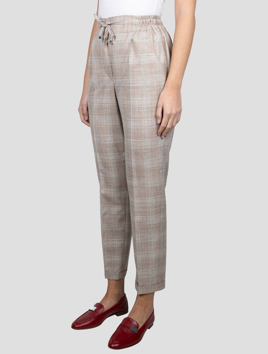 Kiton Brown Wool Silk Cotton Women's Pants - Italian Handmade