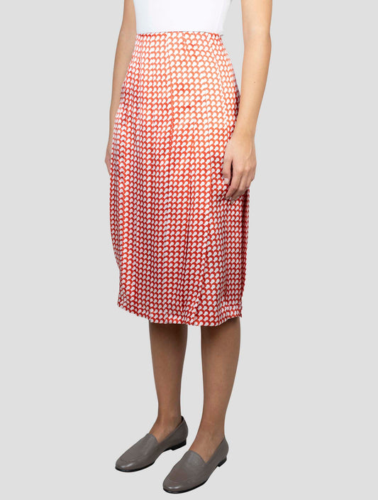 Kiton Red White Silk Skirt - Handmade Italian Designer