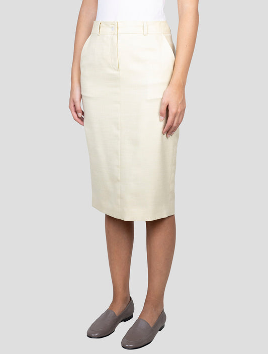 Kiton Beige Wool Silk Linen Skirt - Handmade Italian Women's