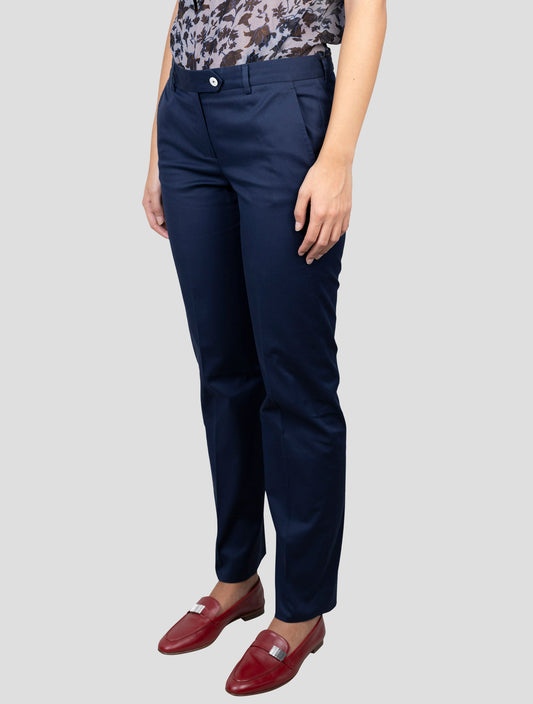 Kiton Blue Cotton Pants - Handmade Italian Women's Trousers