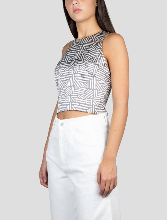 Kiton Gray White Silk Tank Top - 100% Pure Silk Sleeveless