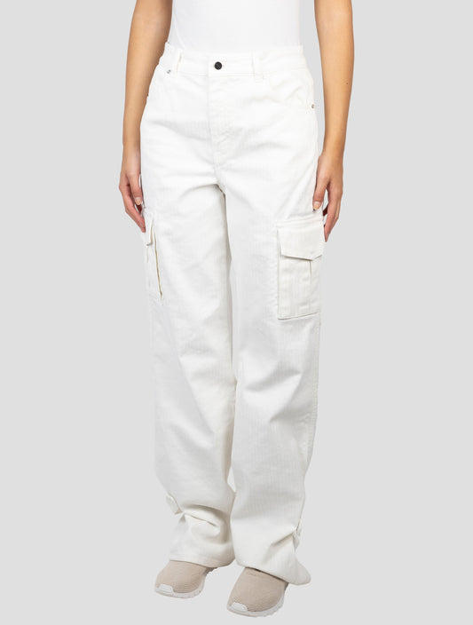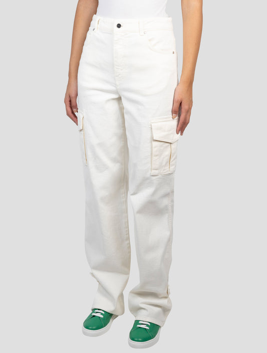 Kiton Handcrafted White Cotton Cargo Pants Women's Designer