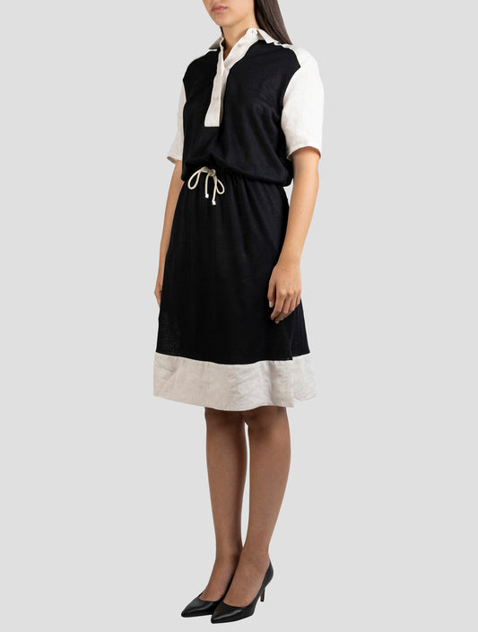 Kiton Handmade Beige Black 100% Linen Dress - Italian Designer