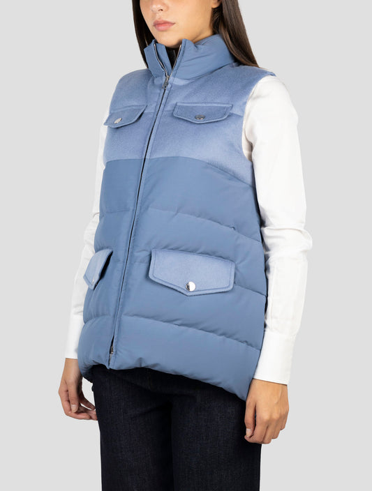 Kiton Women's Light Blue Cashmere Hooded Gilet - 100% Handmade