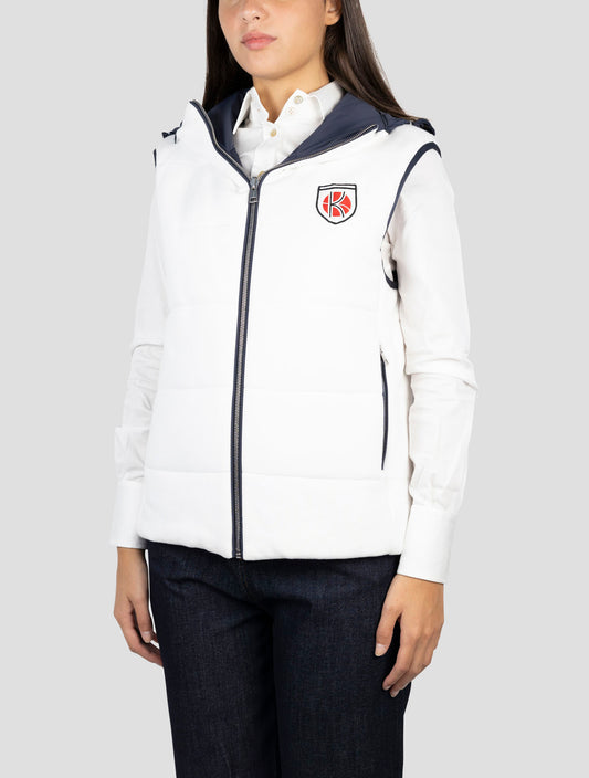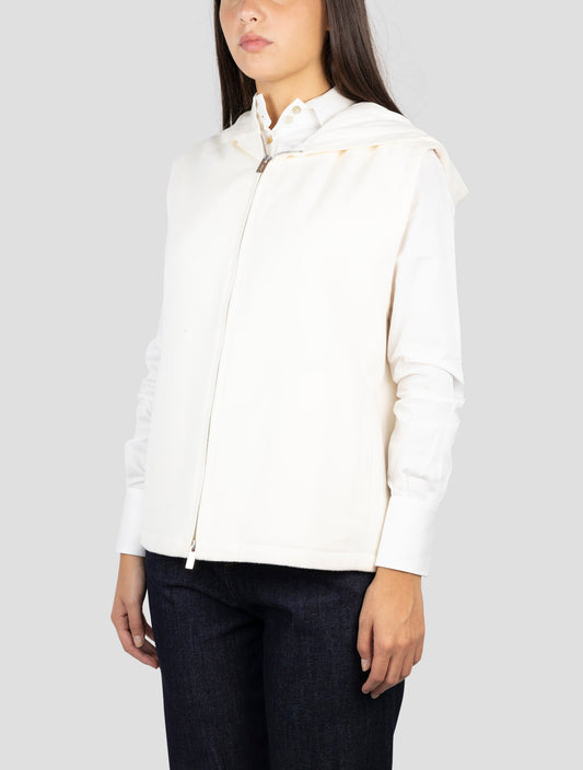 Kiton Premium White Cotton Hooded Gilet - Polyester Lined