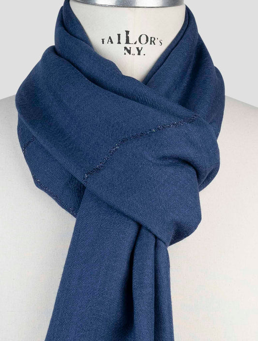 Kiton Blue Cashmere Silk Scarf - 70% Cashmere 30% Silk Handmade