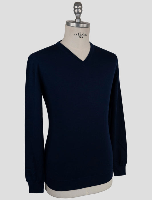 Kiton Blue Wool V-Neck Sweater - 100% Pure Wool Italian Handmade