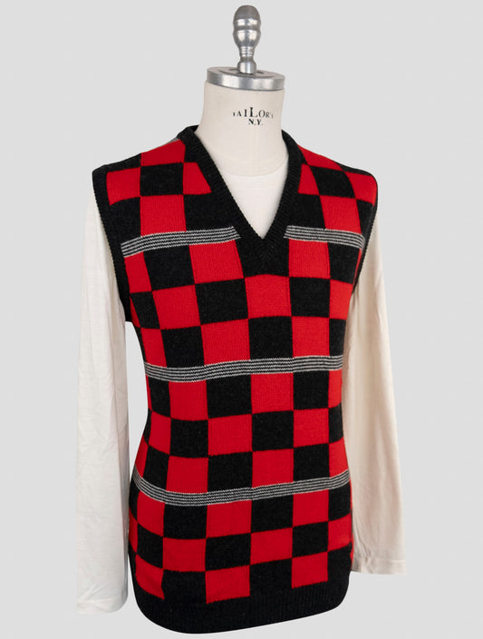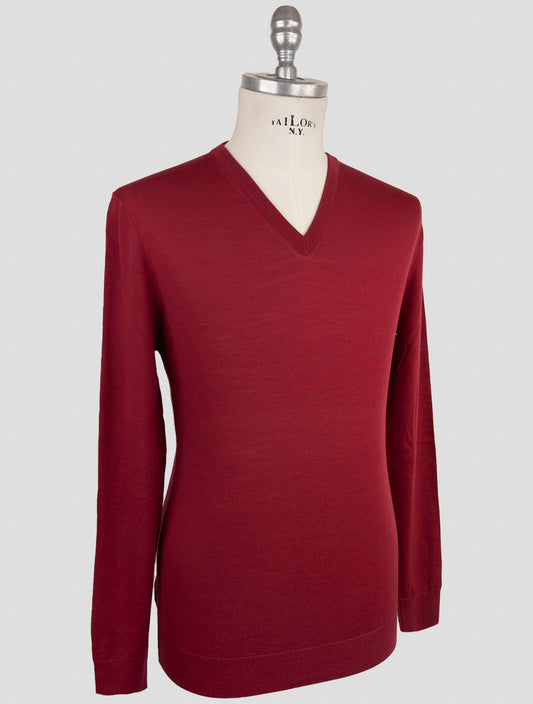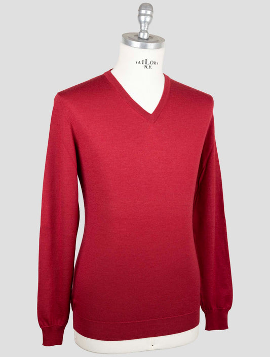 Kiton Red Wool V-Neck Sweater - Italian Handmade Premium Knitwear