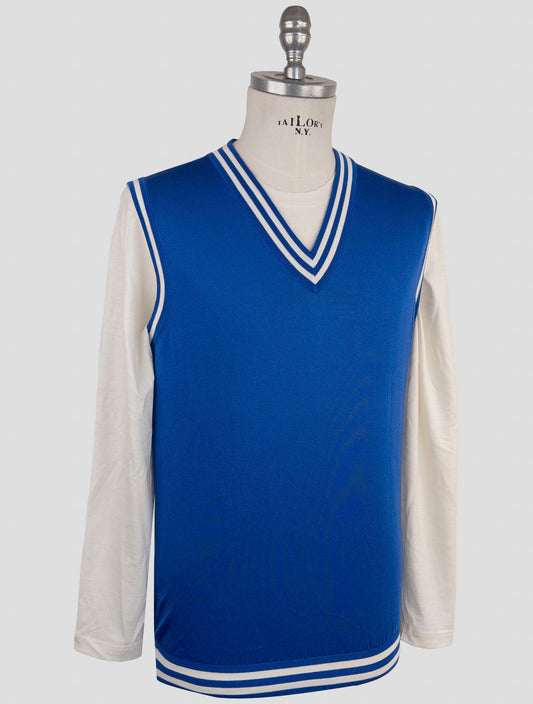 Kiton Pure Silk V-Neck Gilet - Blue White Italian Handmade Vest