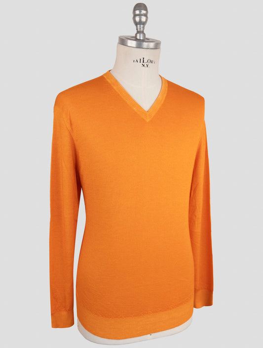 Kiton Orange Cashmere Silk V-Neck Sweater - Italian Handmade