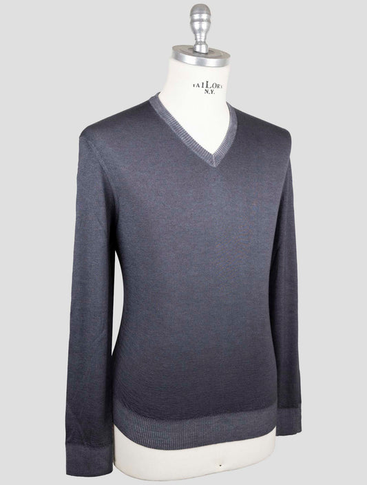 Kiton Cashmere Silk V-Neck Sweater Dark Gray Handmade Italian