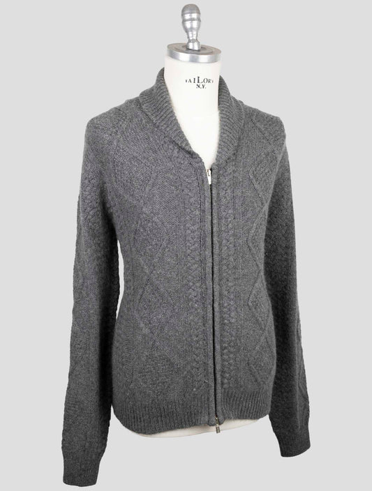 Kiton Men's Premium Cashmere Full-Zip Sweater Gray Handmade Italian
