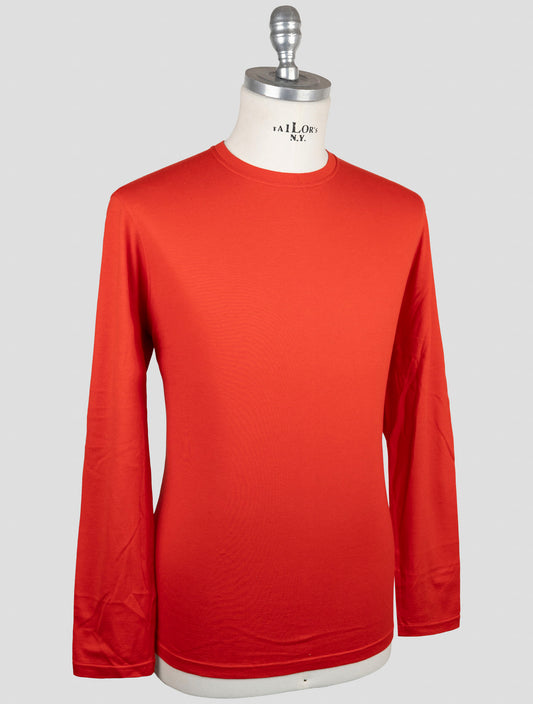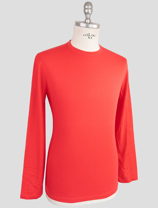 Kiton Red Cotton Cashmere Crew Neck Long Sleeve T-Shirt - Italian Made