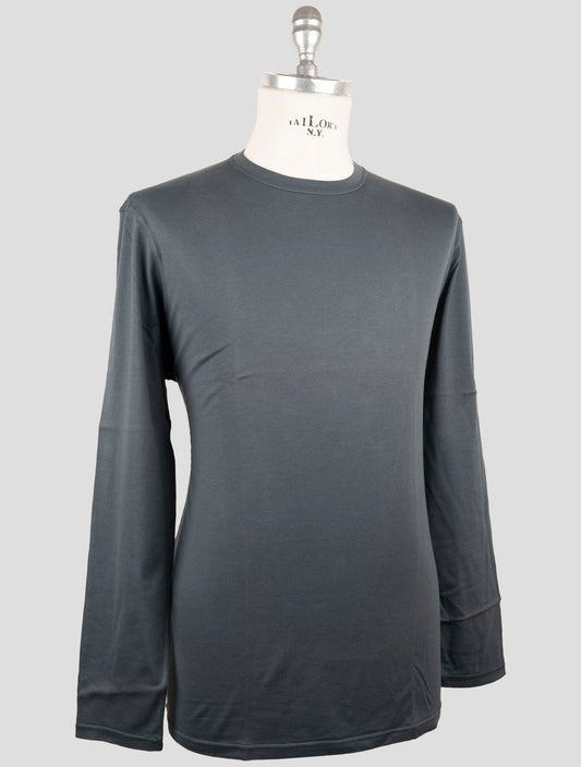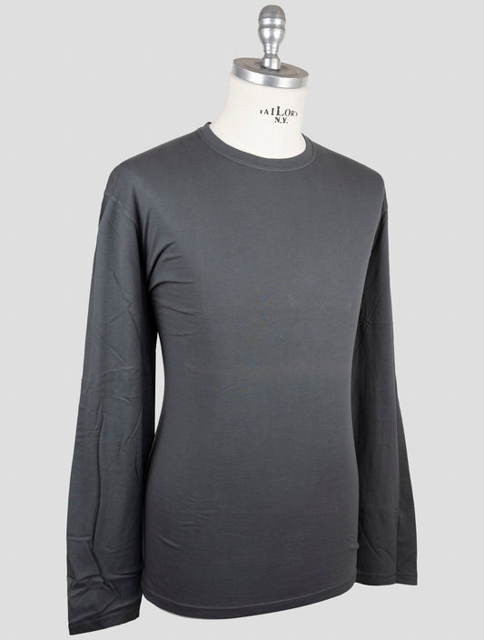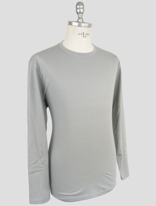 Kiton Premium Cotton Cashmere Long Sleeve T-Shirt Gray Handmade