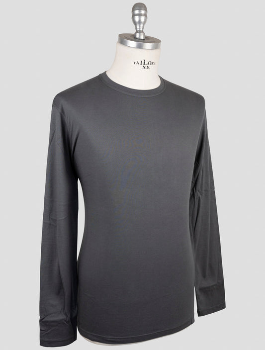 Kiton Cotton Cashmere Long Sleeve T-Shirt Gray Italian Made Men