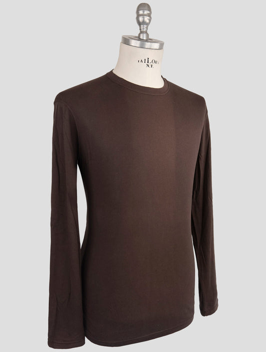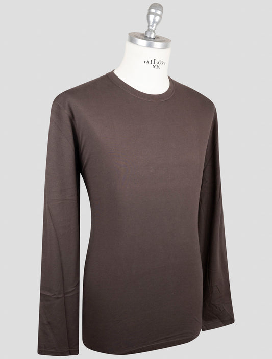 Kiton Premium Cotton Cashmere Long Sleeve T-Shirt Brown Handmade
