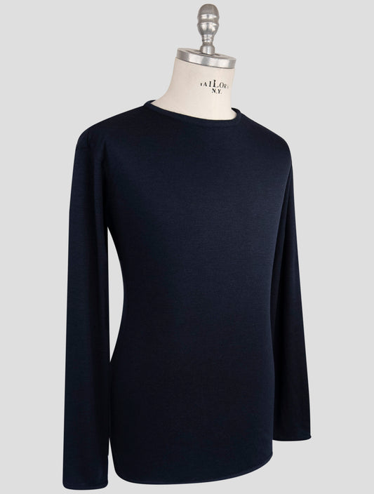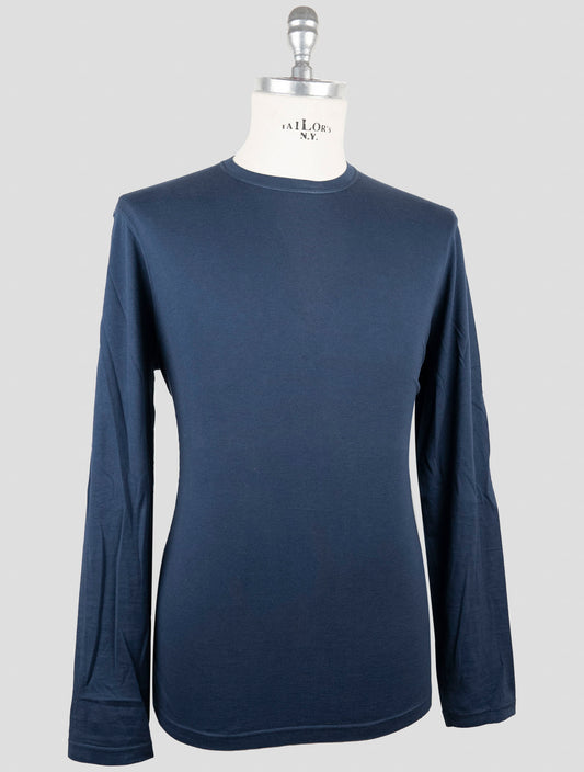 Kiton Premium Cotton Cashmere Long Sleeve T-Shirt Blue Handmade