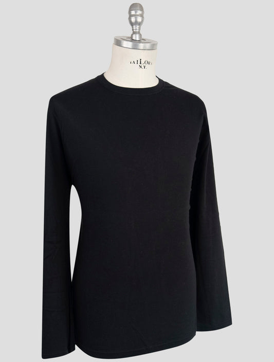 Kiton Premium Cotton Cashmere Long Sleeve T-Shirt Black Italian