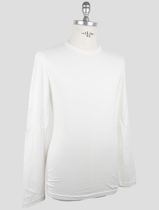 Kiton Premium Cotton Cashmere Long Sleeve T-Shirt White Handmade