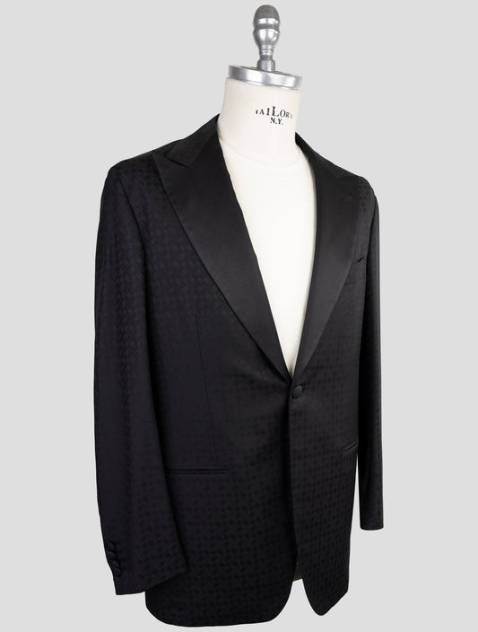 Kiton KNT Black Virgin Wool Mohair Smoking Blazer - Geometric