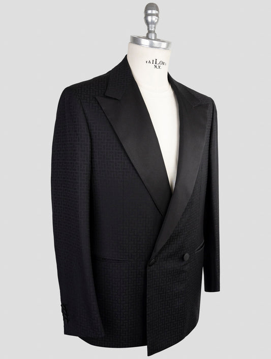 Kiton KNT Double-Breasted Virgin Wool Mohair Tuxedo Blazer Black