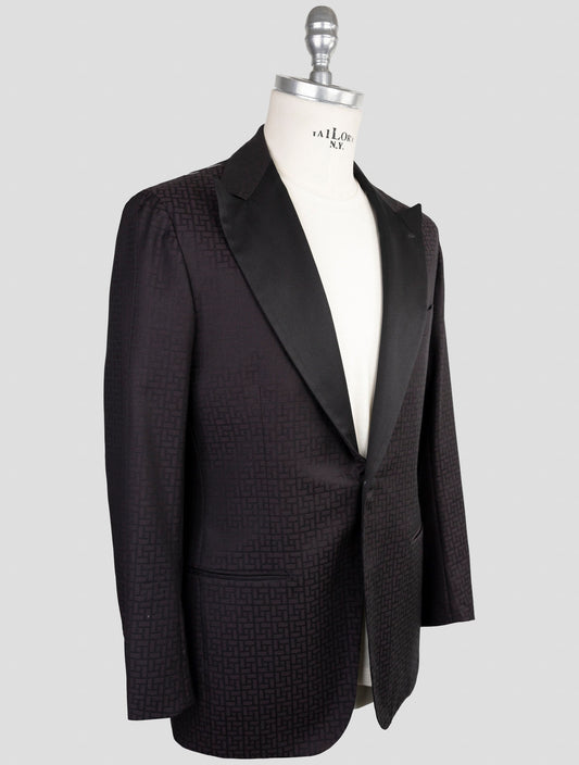 Kiton KNT Luxury Black Purple Virgin Wool Mohair Smoking Blazer