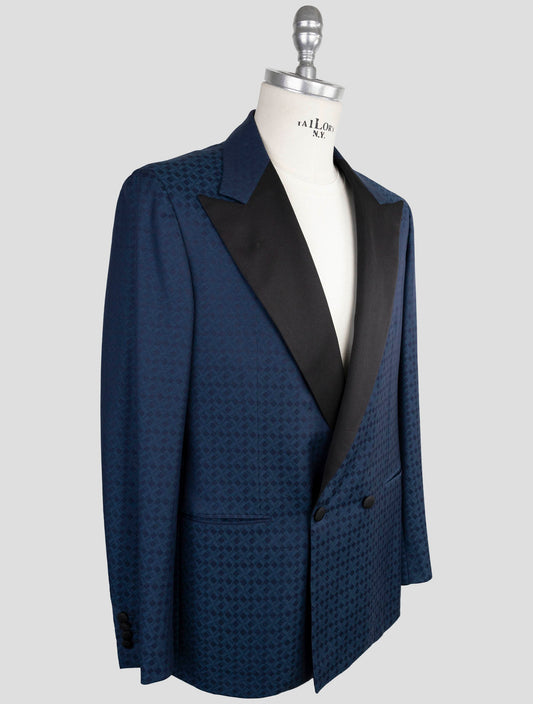 Kiton KNT Blue Virgin Wool Mohair Double-Breasted Smoking Blazer