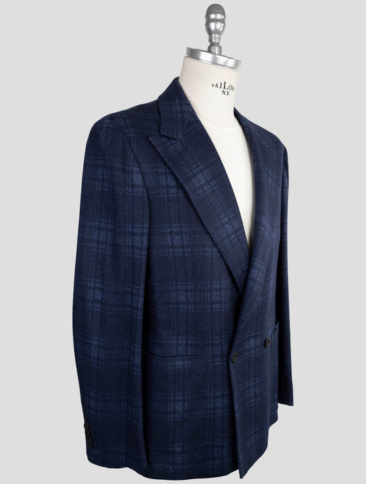 Kiton KNT Blue Cashmere Cotton Double-Breasted Blazer Italy