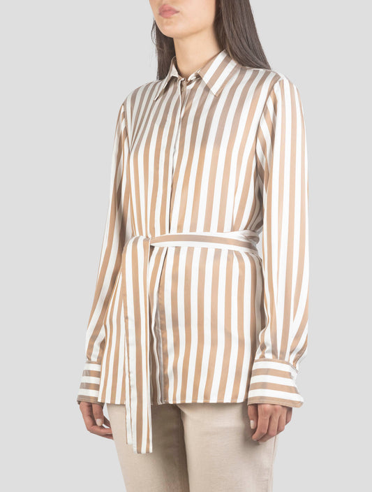 Kiton Handmade Silk Shirt Brown White Striped - Women's Designer