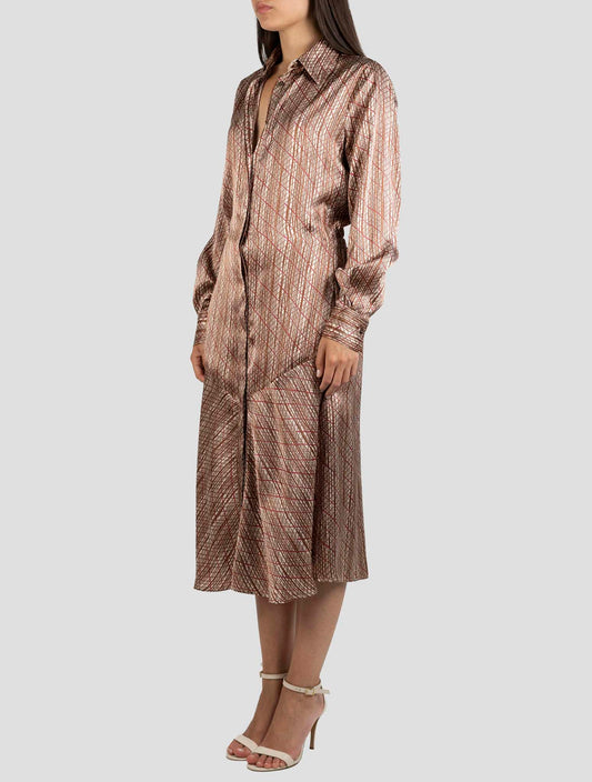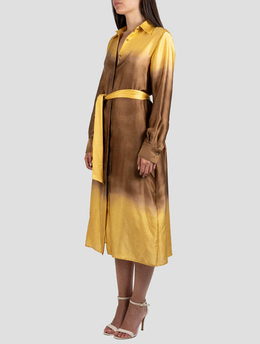 Kiton Handcrafted Brown Yellow Silk Dress - Made in Italy