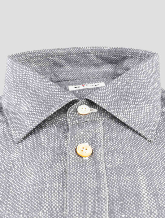 Kiton Gray Check Cotton Dress Shirt Handmade Italy Regular Fit