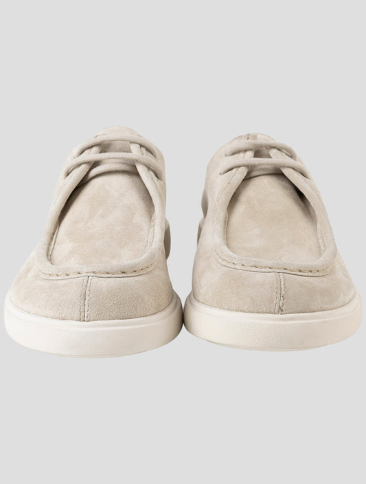 Kiton Handmade Italian Beige Suede Leather Luxury Sneakers Men