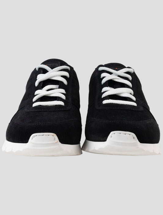 Kiton Black Leather Suede Sneakers - Handmade Italian Luxury Men