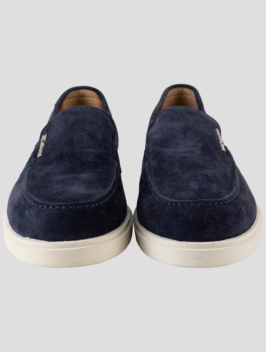 Kiton Blue Suede Loafers - Handmade Italian Leather Slip-On Shoes